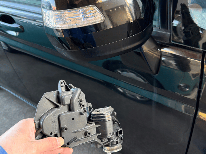 運転席側のドアミラーが電動で格納できなくなってしまった、というご相談をいただきました。駐車時などに片側だけ閉じないのは不便ですし、無理に手で動かすとさらなる故障の原因にもなりかねません。そのため、点検・修理のご依頼を承りました。